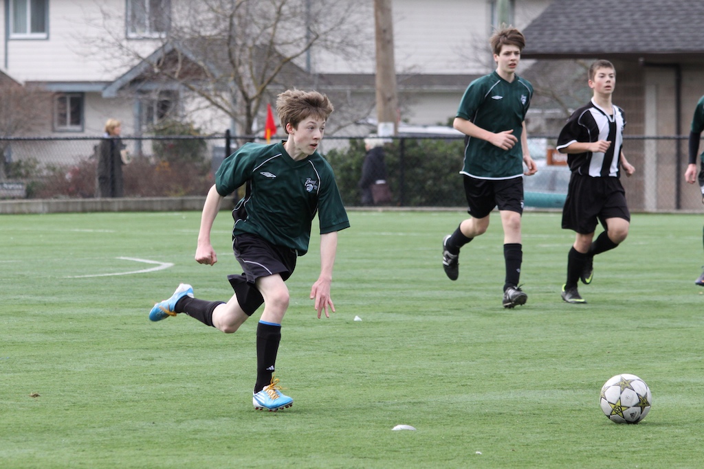 | Mathew skips away during the second half of our tough game while Ben begins to break free to attack |